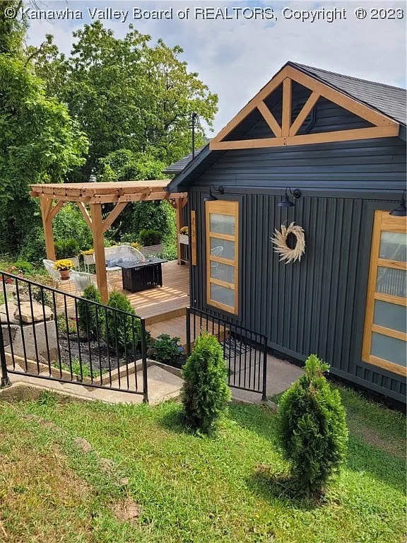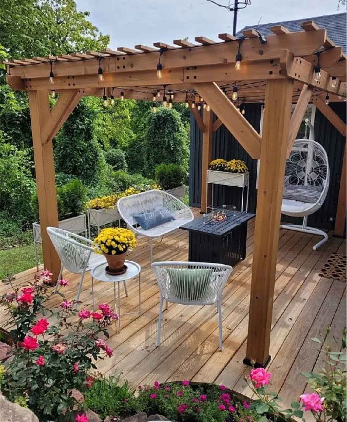 A total exterior makeover featuring a custom pergola, expanded deck, modern dark siding with natural wood accents, and curated landscaping. This home is proof that vision + execution can completely redefine a home.