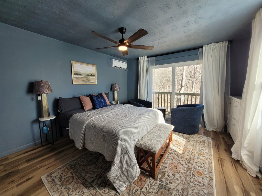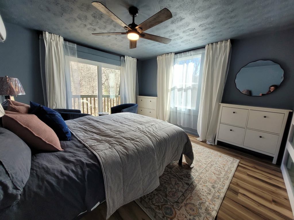 The bedroom layout allows for: